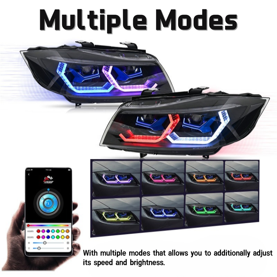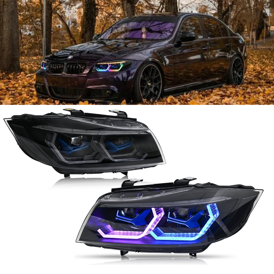 Faro Anteriore a LED RGB Modificato per BMW Serie 3 E90 E91 con DRL 2005-2012, Animazione di Avvio e Aggiornamento Lampada Anteriore Colorata