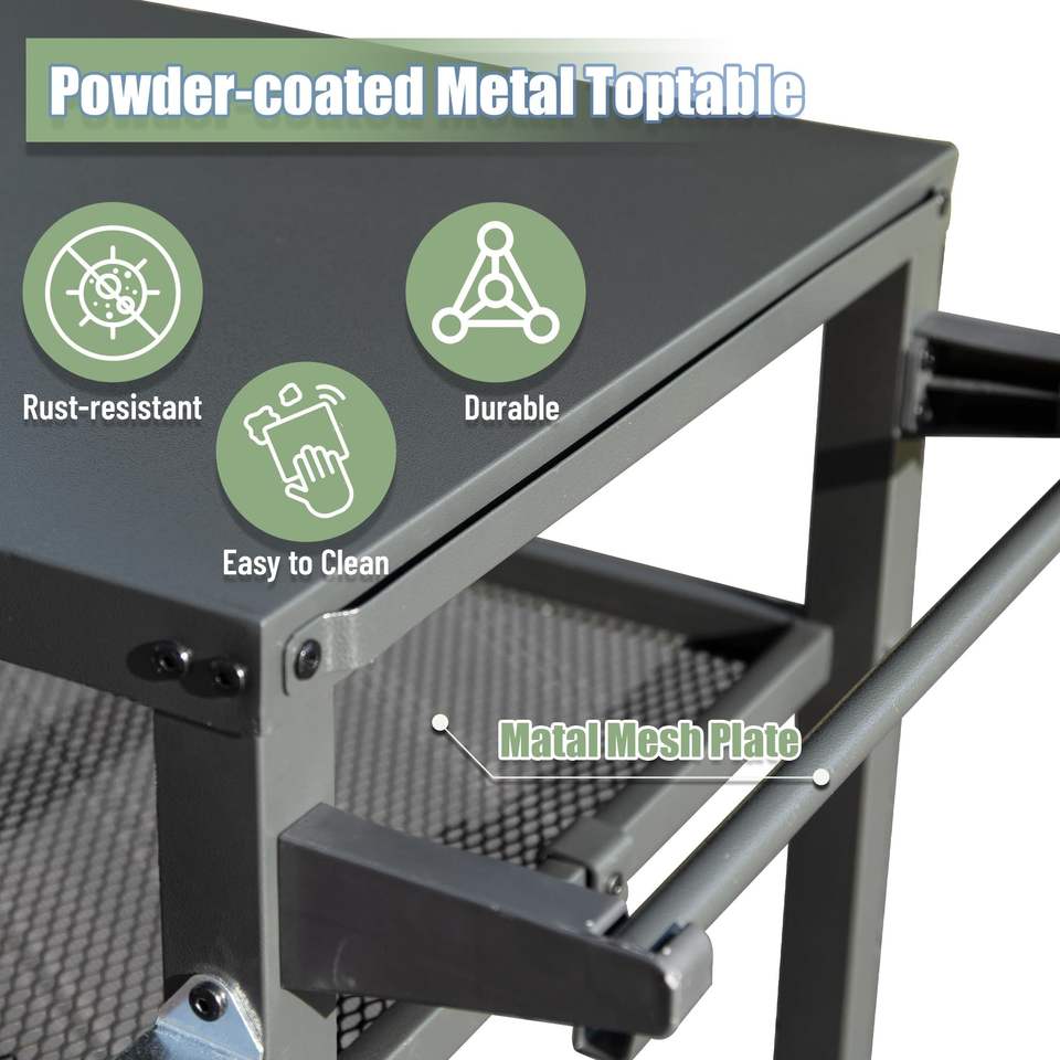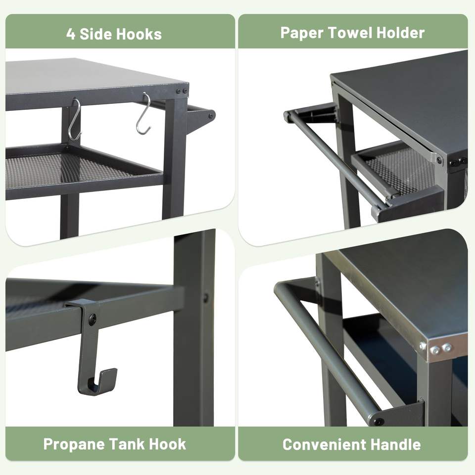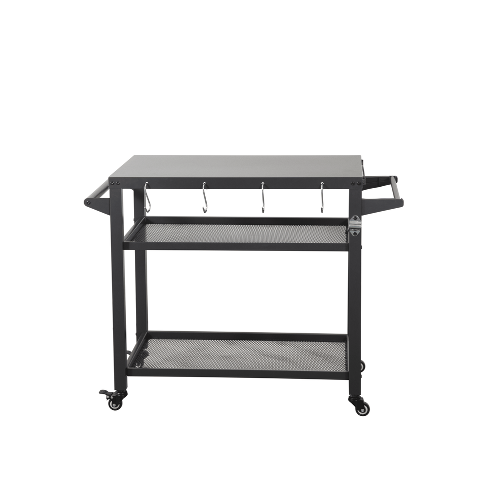 Carrello portaoggetti da esterno a 3 ripiani con ruote per tavolo Blackstone, forno pizza, preparazione cibo e grill Blackstone