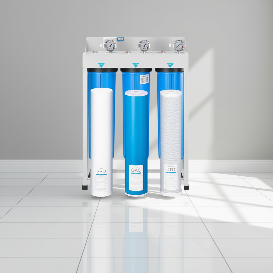 3-Stage 4.5x20 Whole House Water Filter System GAC Chlorine Reduction Canister Type