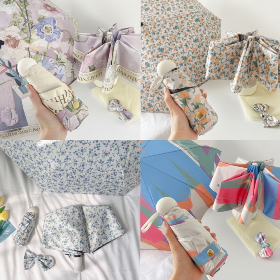 3-Stage Mini Ultra-Light UV Blocking Flower Umbrella Sunshade Parasol with Blackout Feature Ver2