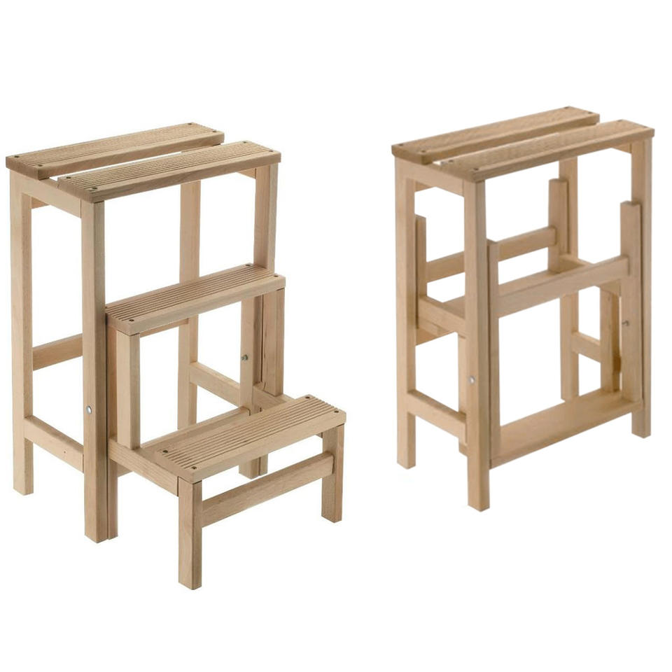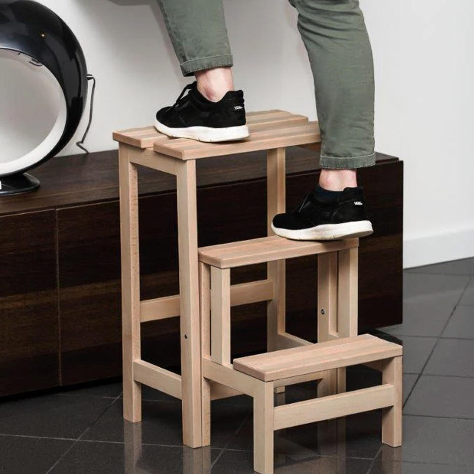 3-Step Foldable Beech Wood Ladder Stool 36x44x58 cm Non-Slip Home Work Platform
