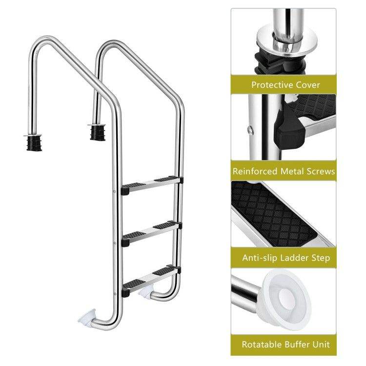 Scala per Piscina in Acciaio Inox a 3 Gradini con Gradini Antiscivolo