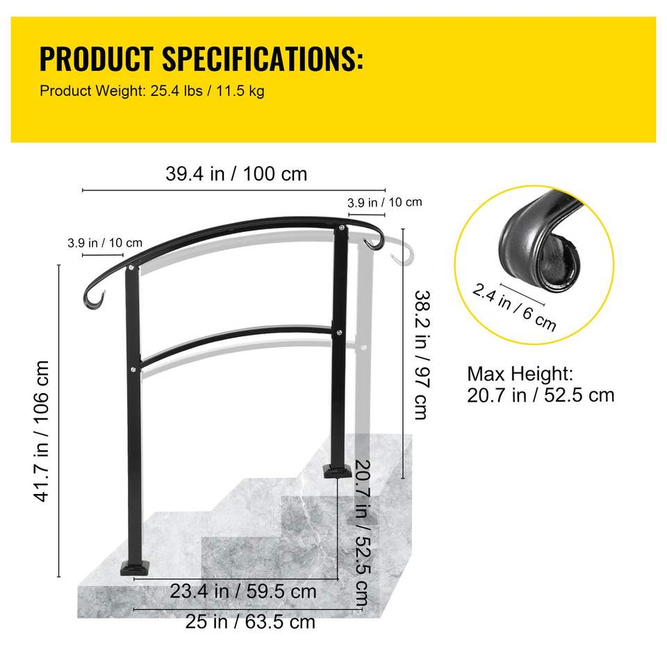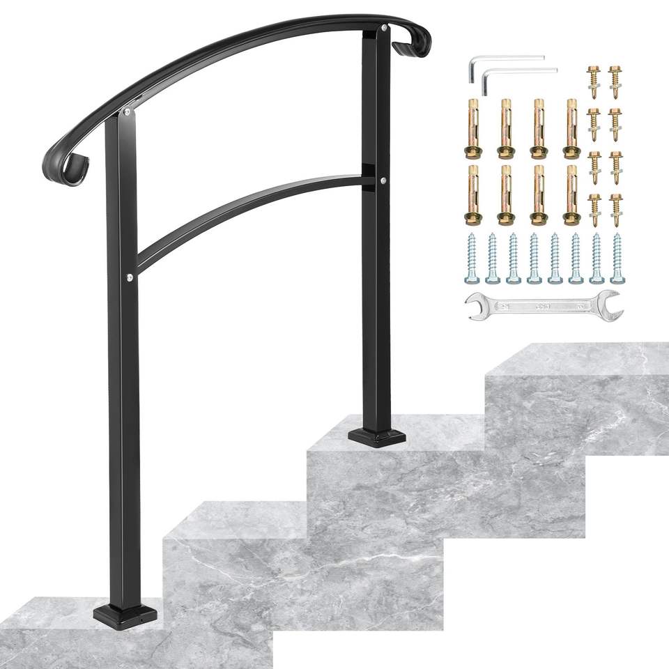 Kit di Installazione Corrimano a 3 Gradini, Finitura Opaca in Ferro Battuto per Scale Esterne, Adatto per 1-3 Gradini