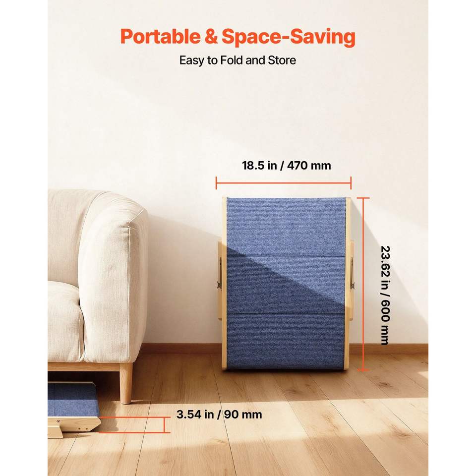Scala a 3 gradini in legno per animali domestici, per letti, divani, auto, stabile e robusta, per gatti, con capacità di carico di 68 kg, design pieghevole piatto