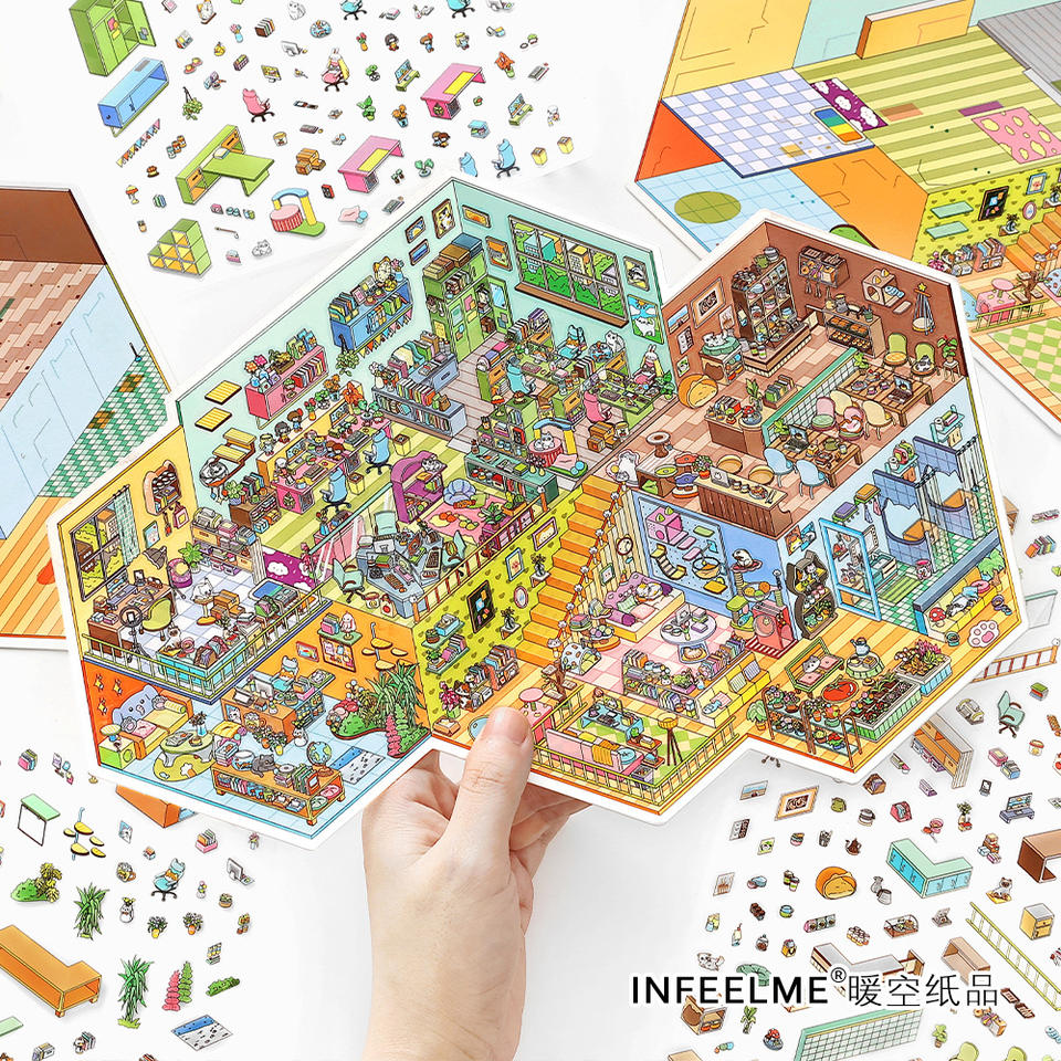 3 Adesivi + 1 Immagine Scenica/pack - Offerta Speciale di Oggi - 32a Serie PET Cartoncino Bianco Adesivo Scenico 2.5D Oversize