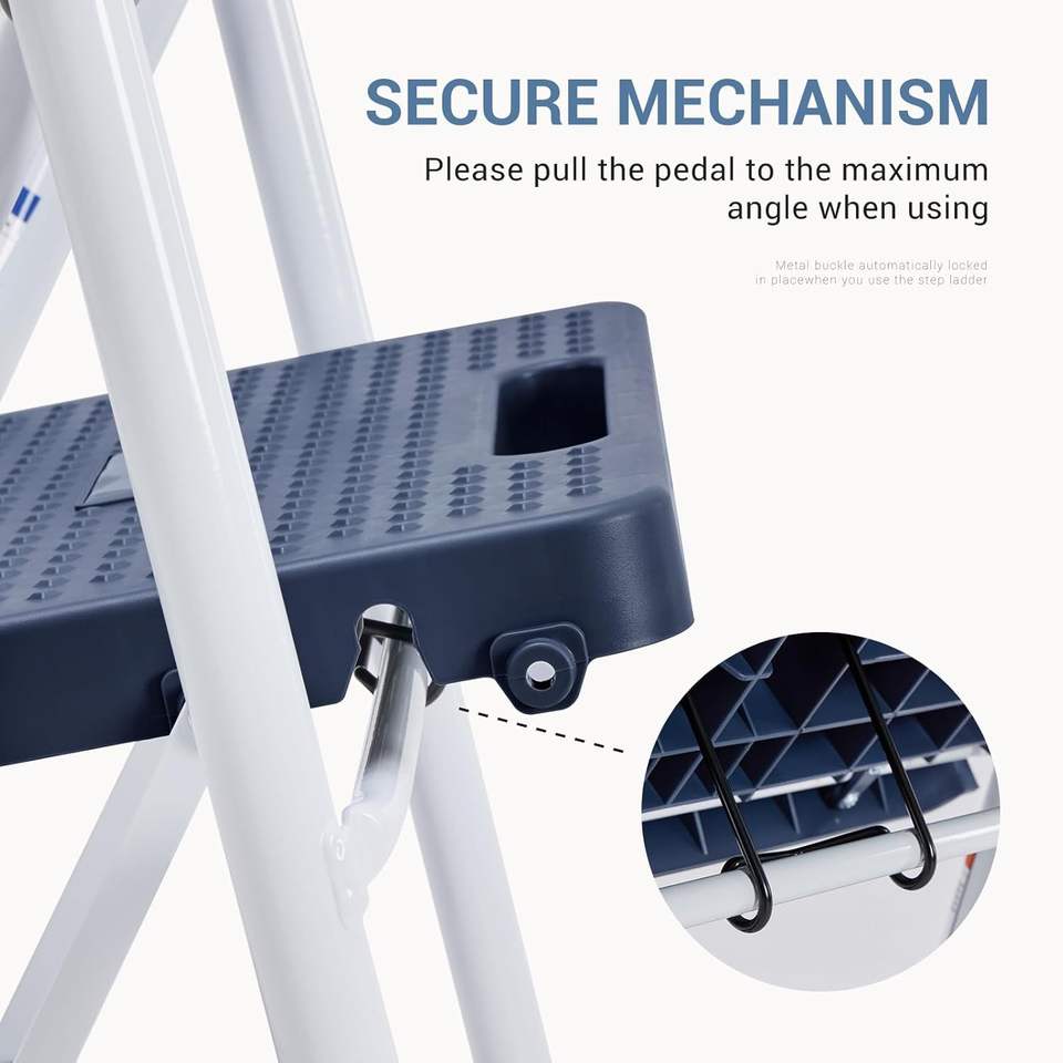 Sgabello a 3 gradini robusto e antiscivolo con corrimano confortevole, portatile, per uso intensivo in cucina, garage e all'aperto