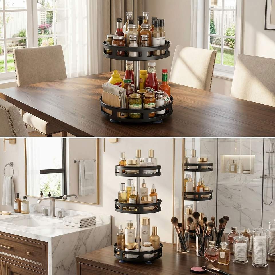 3-Tier 360-Degree Rotating Carbon Steel Spice Rack Organizer Multifunctional Kitchen Turntable for Seasoning & Condiments