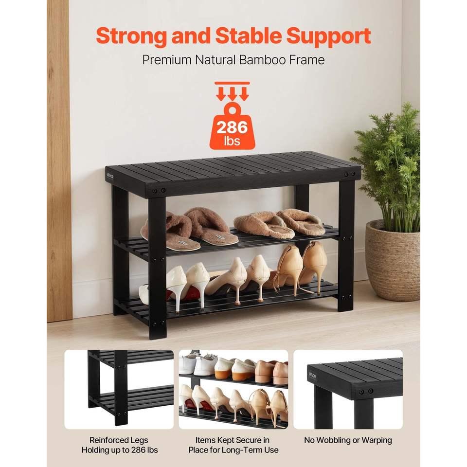 Scarpiera a 3 livelli in bambù con panca, 70 x 29 x 45 cm, organizer da ingresso con accesso frontale, capacità 130 kg