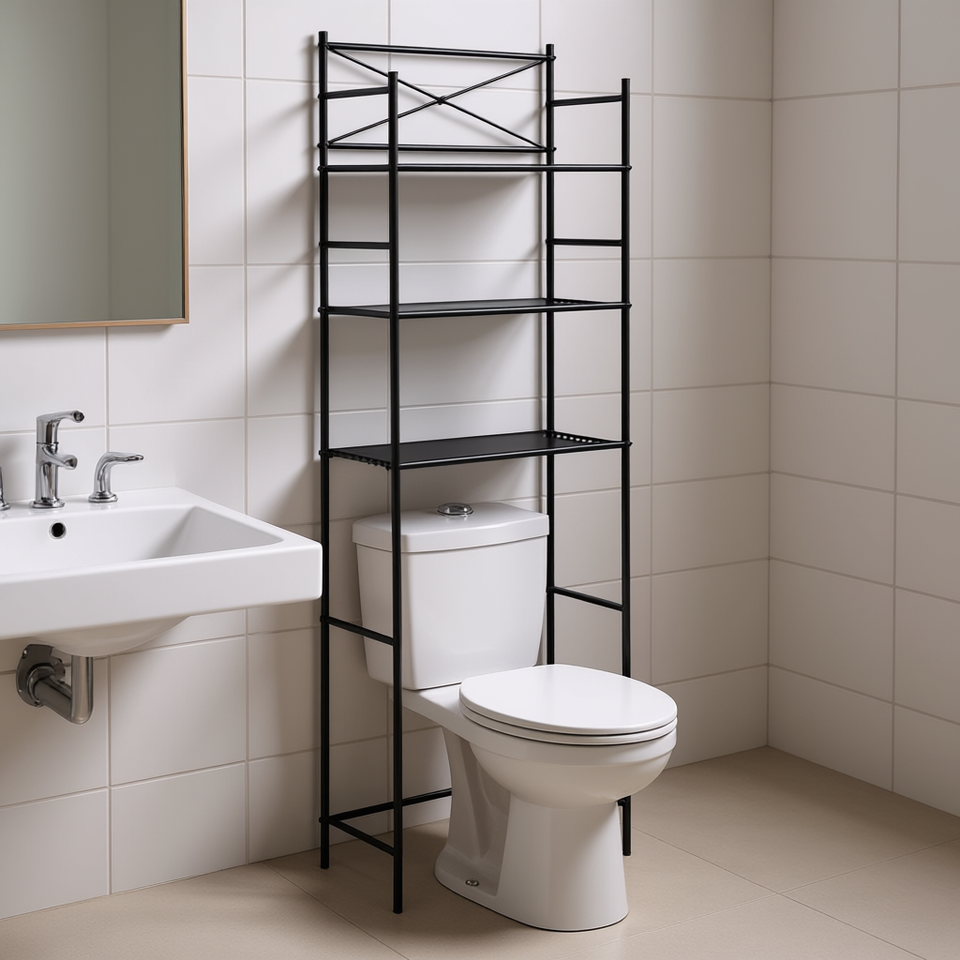 3 Tier Black Metal Over The Toilet Shelf Bathroom Storage Freestanding Minimalist Design