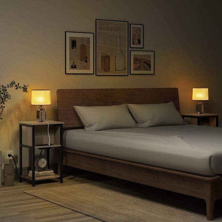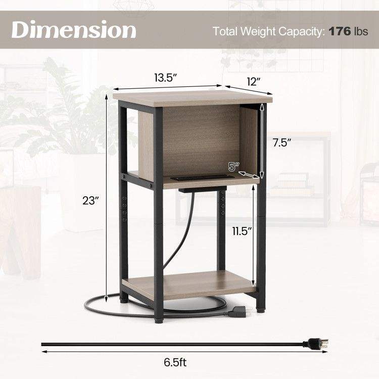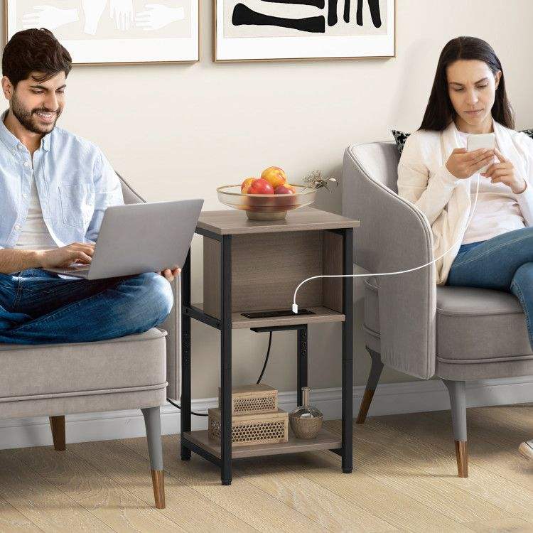 Tavolino Consolle a 3 Ripiani con Porte USB e Prese di Corrente, Tavolino Moderno per Arredamento Casa