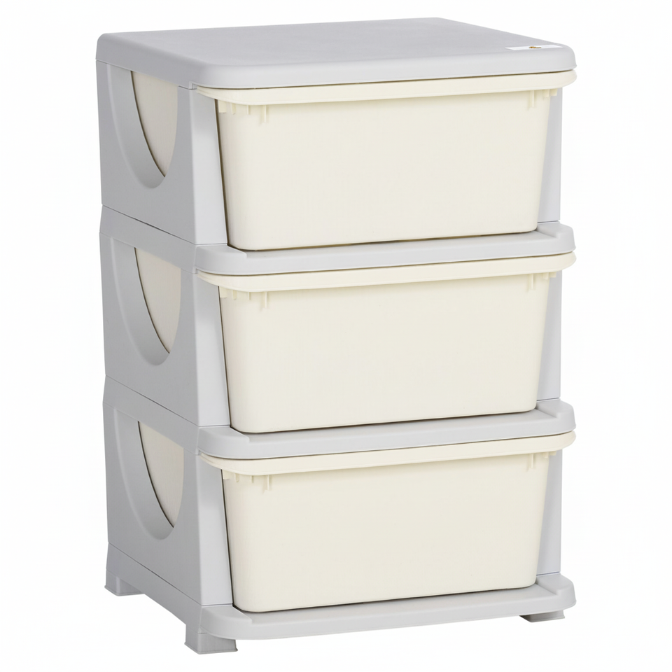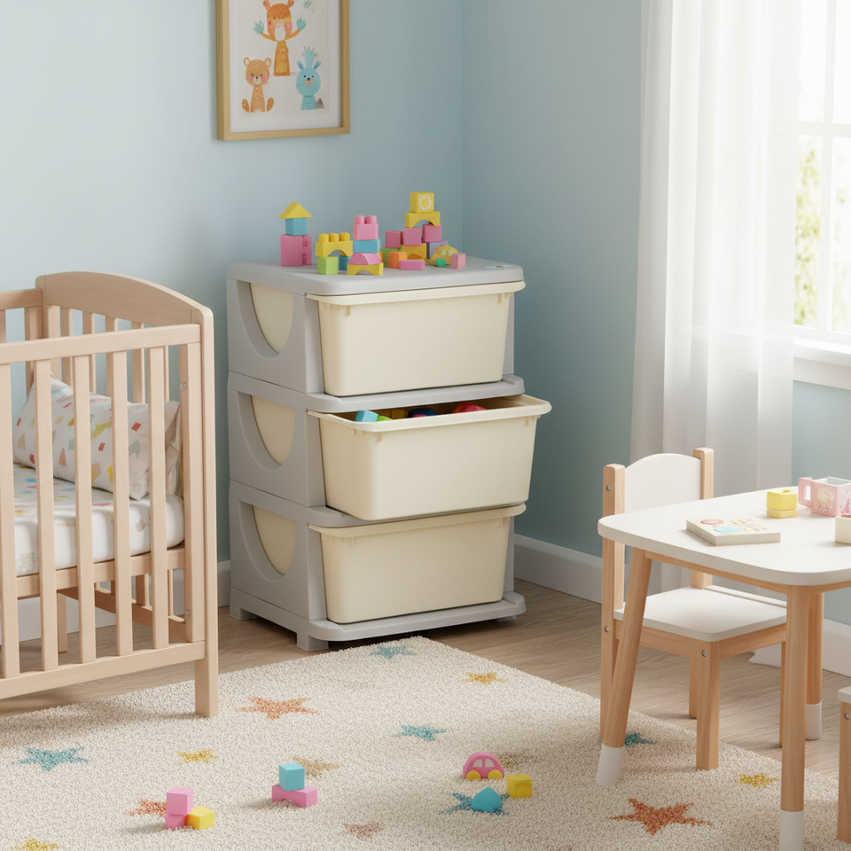 Organizzatore per Giocattoli a 3 Ripiani Bianco Crema Durevole con Cassetti Spaziosi per Camera da Letto, Asilo Nido, Soggiorno, Bambini, Prodotto in Cina