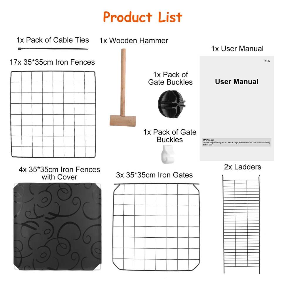 Recinto per Gatti da Interno a 3 Livelli Staccabile con 3 Porte e 2 Scale, Grande Gabbia in Metallo con 1-2 Casette per Gattini