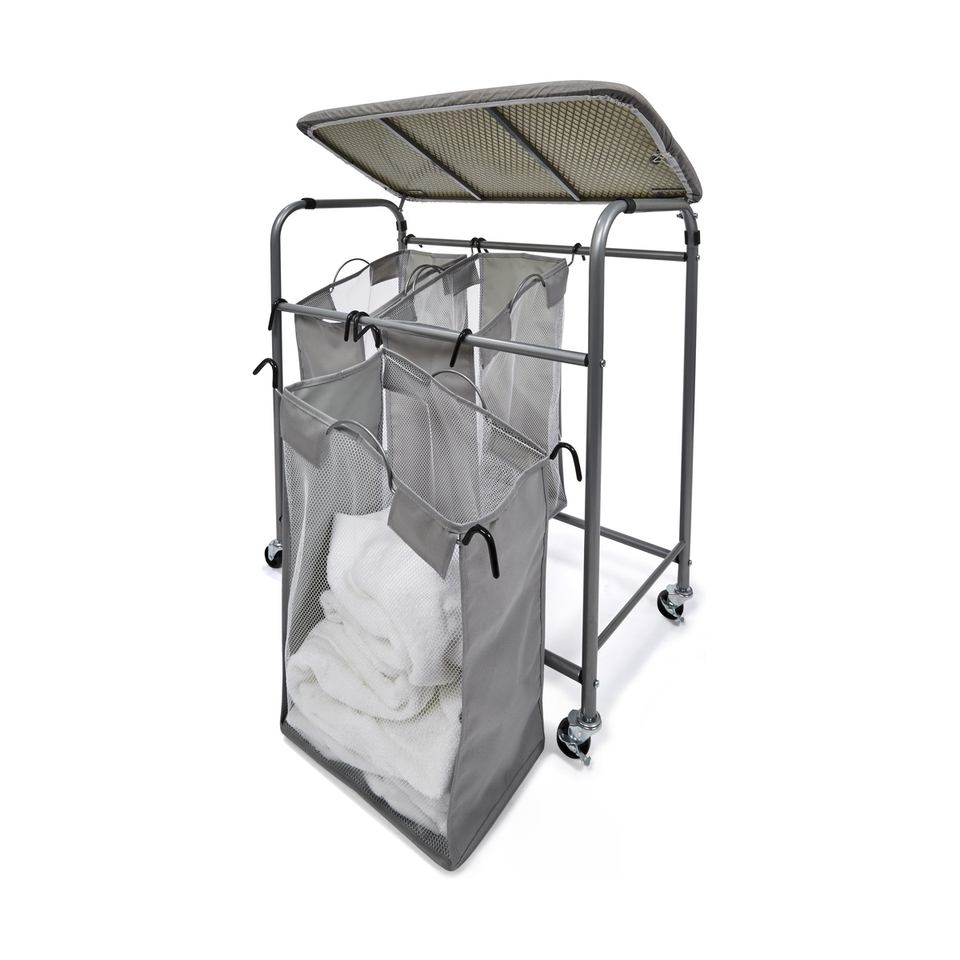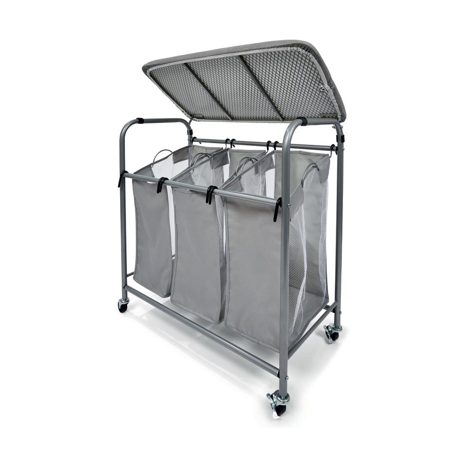 3-Tier Detachable Laundry Hamper Heavy Duty Laundry Basket with Iron Board and Rotary Wheels
