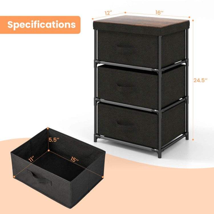 Comodino a 3 Ripiani in Tessuto con Robusta Struttura in Metallo e Eleganti Cassetti Portaoggetti