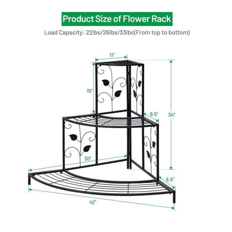 Scaffale Angolare a 3 Livelli in Metallo per Piante e Fiori, Elegante Mensola da Parete e Espositore