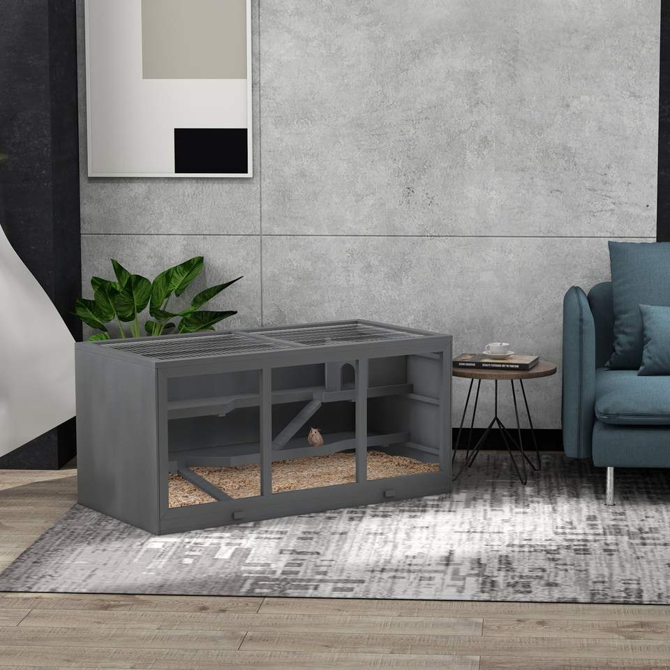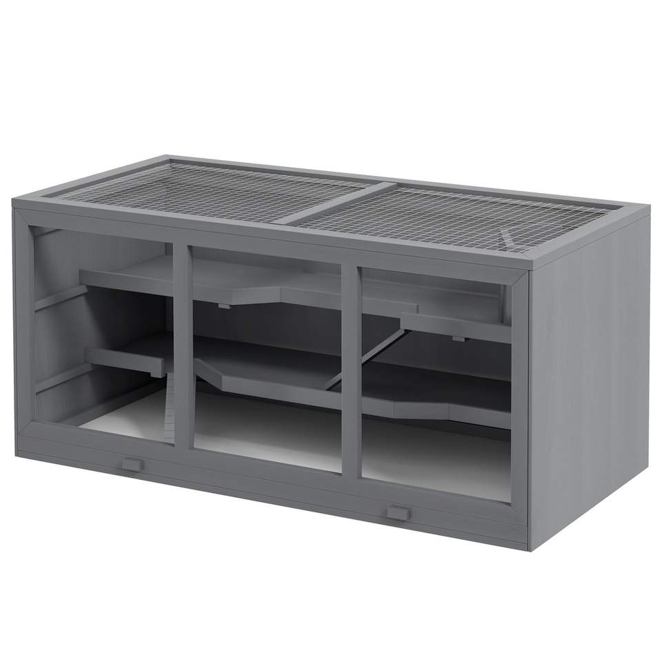 Gabbia per Criceti a 3 Piani Grigia con Tetto a Cerniera e Vassoio Impermeabile, Design Salvaspazio per Piccoli Animali