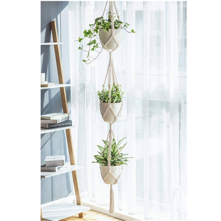 Supporto per piante da appendere a 3 livelli supporto per fioriera da appendere supporto per vasi da fiori in corda di cotone fatto a mano decorativo per interni all'aperto