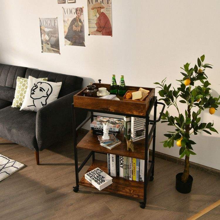Carrello da Cucina a 3 Ripiani con Ruote Bloccabili e Maniglia per Casa, Pub, Isole e Carrelli da Cucina