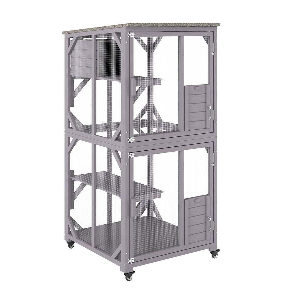 Cuccia per Gatti a 3 Piani con Ruote Girevoli a 360 Gradi, 2 Piattaforme e Box Riposo per Gatti da Esterno e Gabbie per Animali Domestici