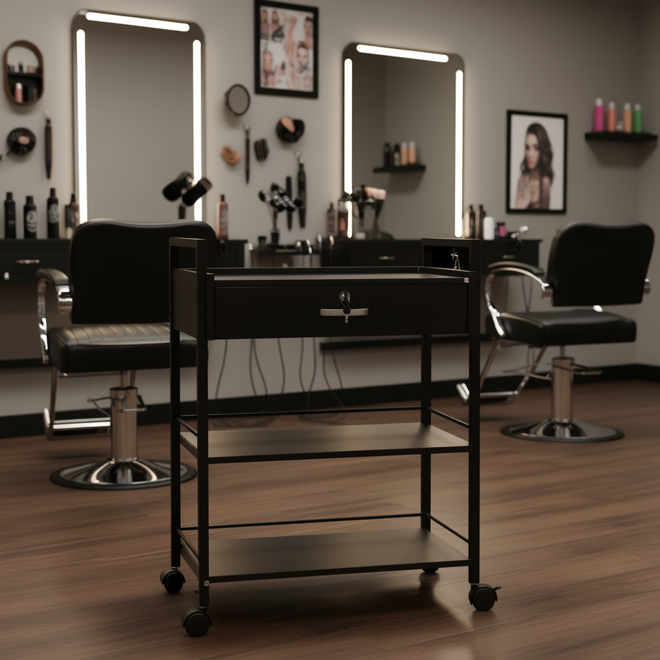 Carrello da Salone a 3 Livelli con Cassetti Bloccabili in MDF, Stazione di Stoccaggio Mobile a 4 Ruote per Estetisti, Tatuatori, Armadietto per Salone di Bellezza