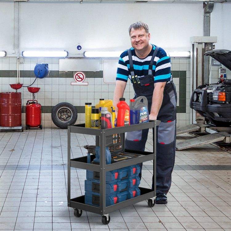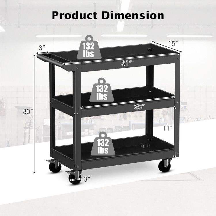 Carrello Portautensili a 3 Ripiani in Metallo con Ruote Universali Bloccabili e Maniglia Piatta