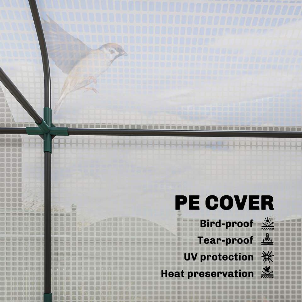 Serra Portatile Bianca a 3 Livelli 143 cm x 46 cm x 165 cm con 2 Porte Avvolgibili per Piccoli Giardini