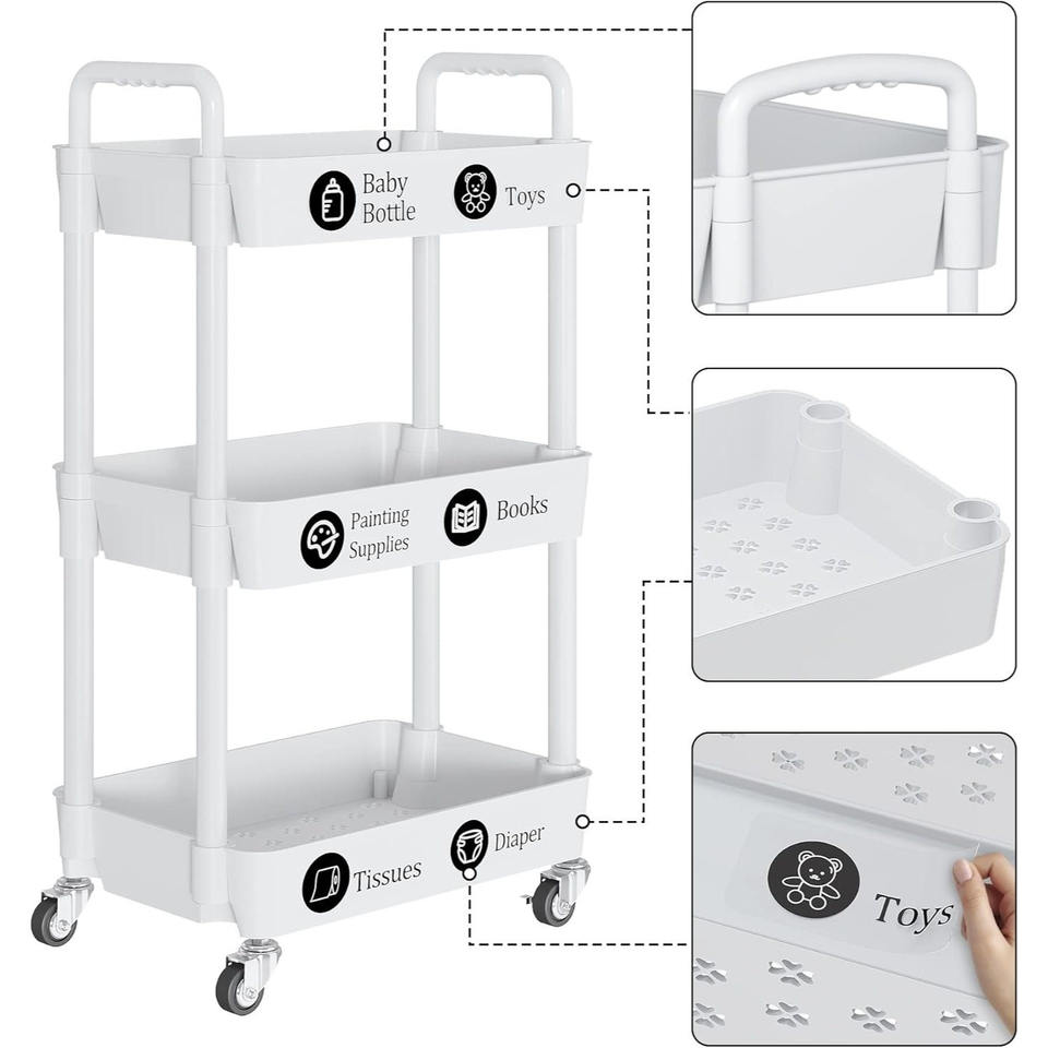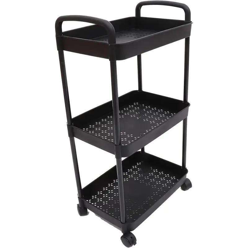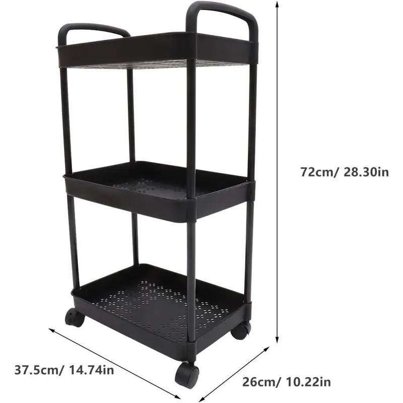 3-Tier Rolling Storage Cart with Handle Black Plastic Drawers for Office Living Room Laundry Room & Kitchen Bathroom Use
