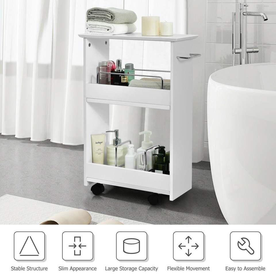 Mobiletto Sottile a 3 Ripiani per Bagno e Soggiorno con Maniglia Comoda