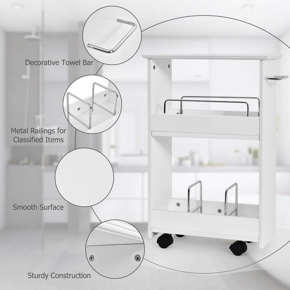 Carrello portaoggetti mobile a 3 ripiani sottile con ruote e maniglia per bagno
