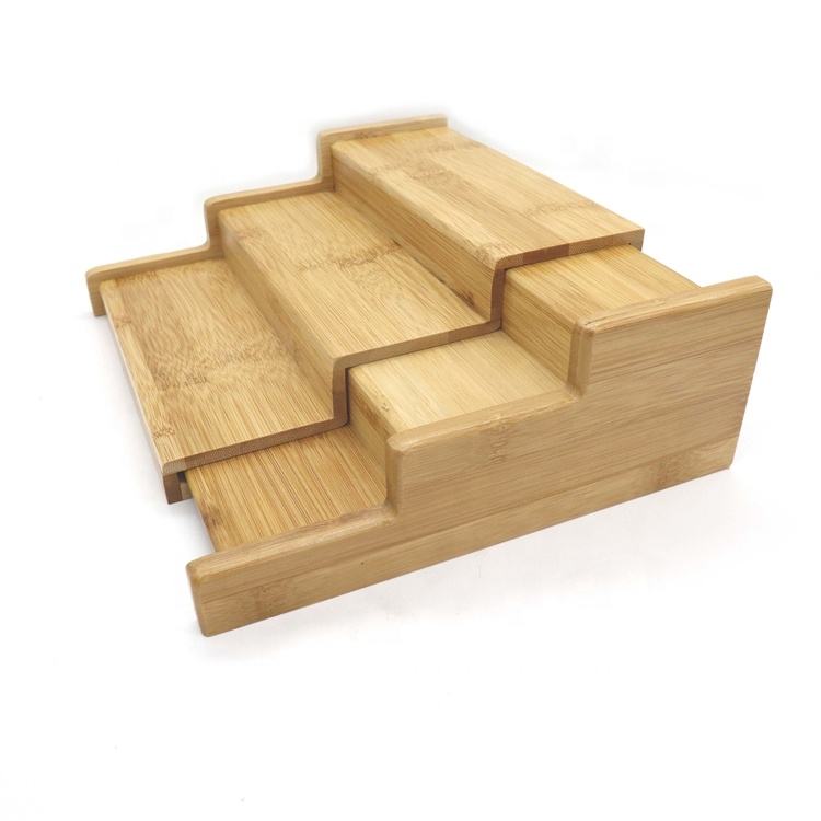 Portaspezie a 3 Ripiani, Organizzatore a Gradini, Larghezza Espandibile, in Bambù per Cucina, Scaffale Pieghevole per Casa 22cm - 38cm