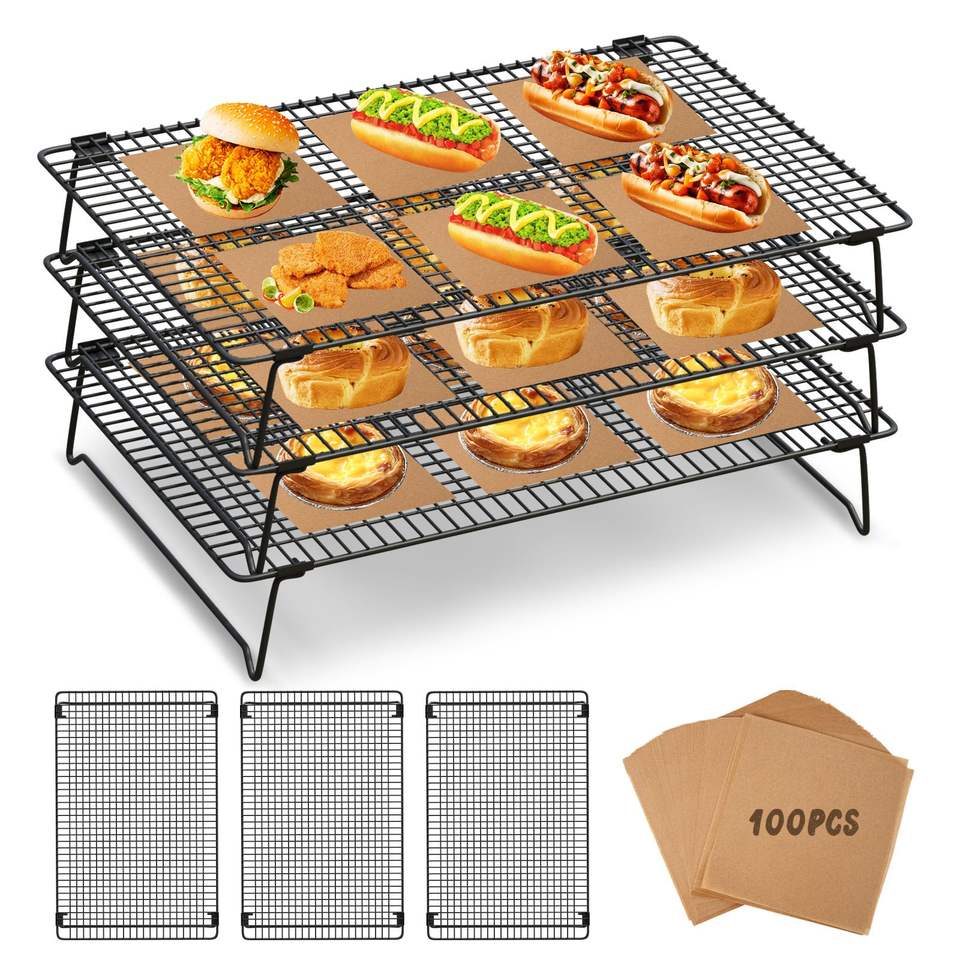 Set di 100 Griglie Impilabili a 3 Livelli in Filo Metallico Antiaderente, Essenziali per Raffreddare Biscotti e Carni Grigliate, Facili da Usare