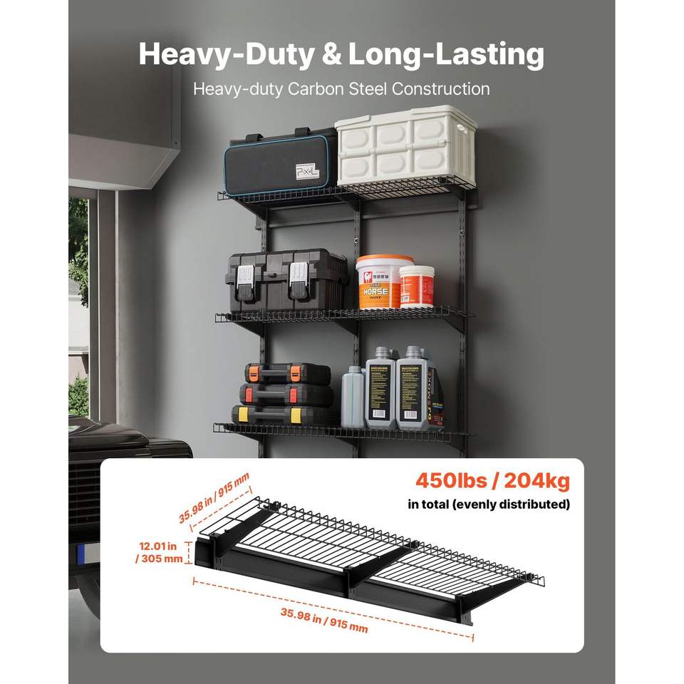 Scaffalatura a 3 livelli in acciaio da parete per garage, 11x36 pollici per ripiano, scaffalatura galleggiante resistente 0,9 x 3 piedi