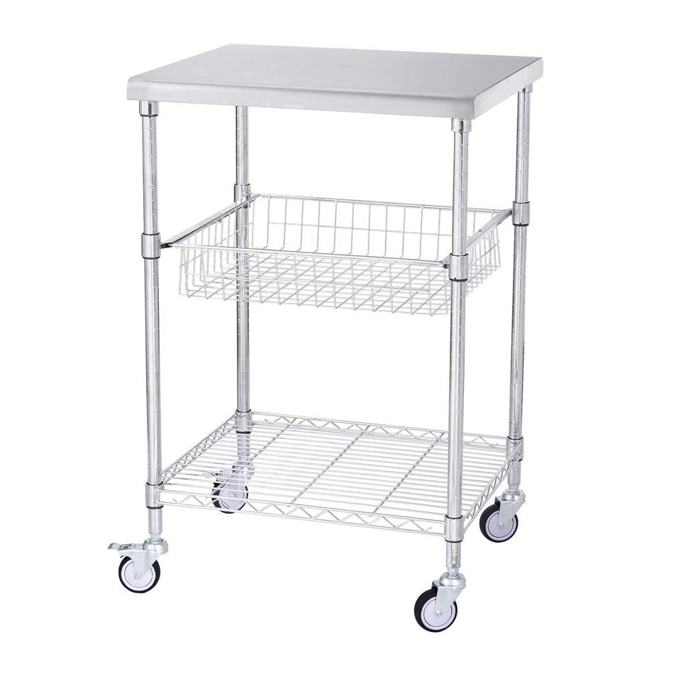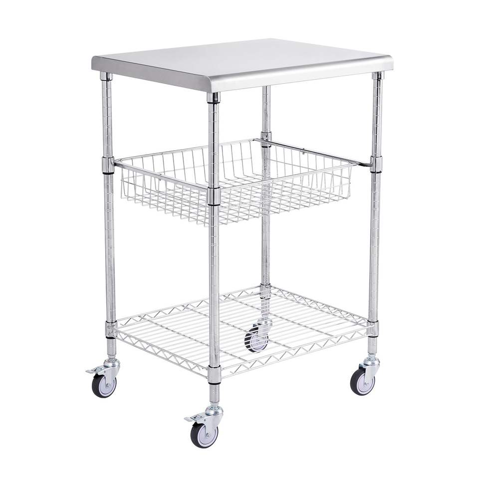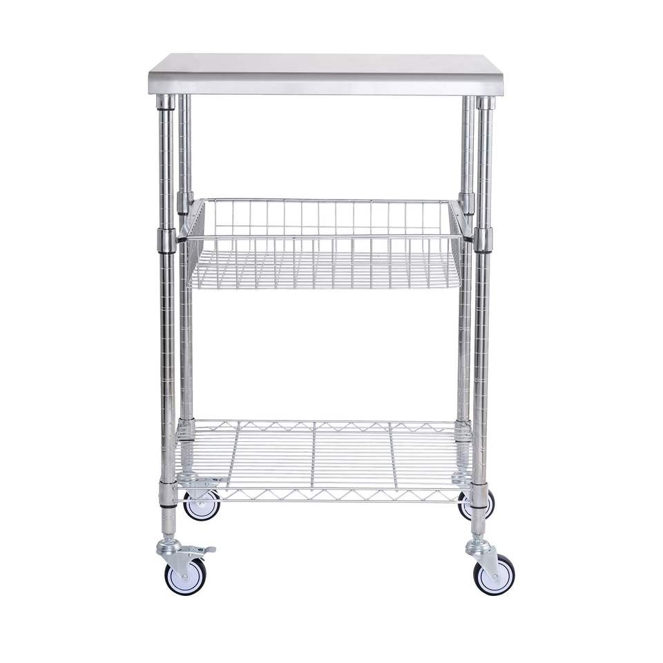 Carrello da Cucina a 3 Ripiani, Capacità 470 Libbre, Carrello Portaoggetti in Metallo, Carrello di Servizio in Acciaio con Ruote, Carrelli da Cucina con Ruote