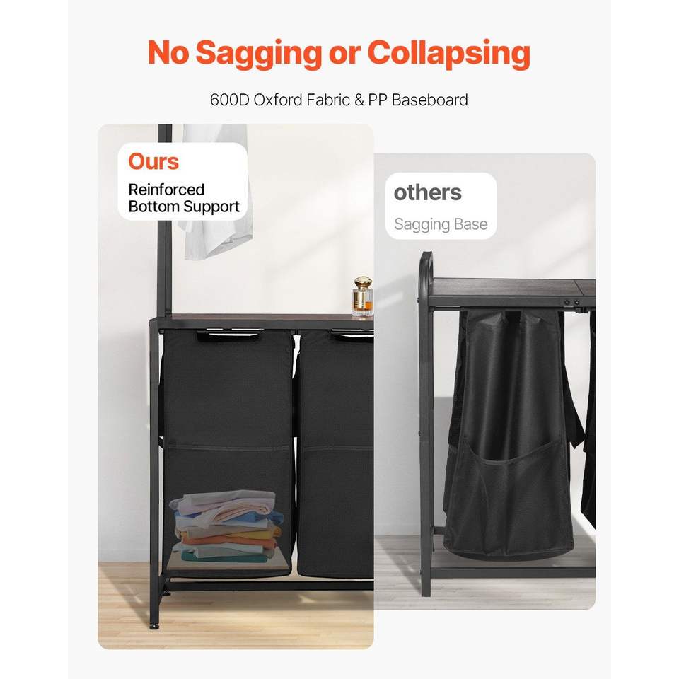 3 Tiers Tall Laundry Hamper Sorter with Freestanding 2 Section Hanging Rack Storage Laundry Hampers with Drawers and Rack
