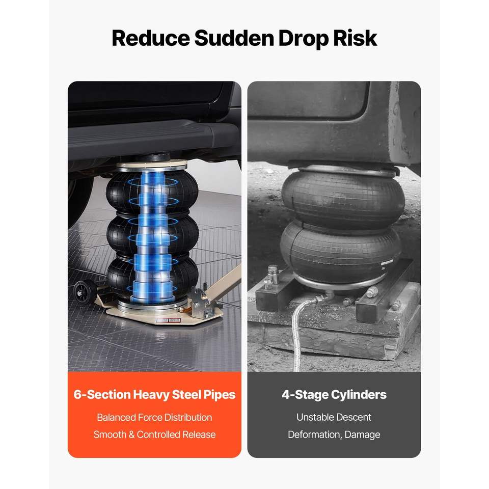 Martinetto Pneumatico a Tre Sacche da 3 Tonnellate/6613 Libbre, Sollevamento Rapido 1-6 s, per Tubi in Acciaio, Altezza di Sollevamento 17,7 Pollici/450 mm