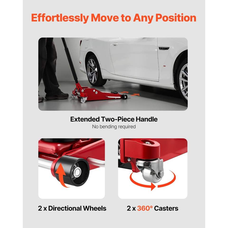 Martinetto idraulico da corsa in alluminio a basso profilo con pompa a sollevamento rapido e doppi pistoni, capacità 3 tonnellate (6614 libbre)