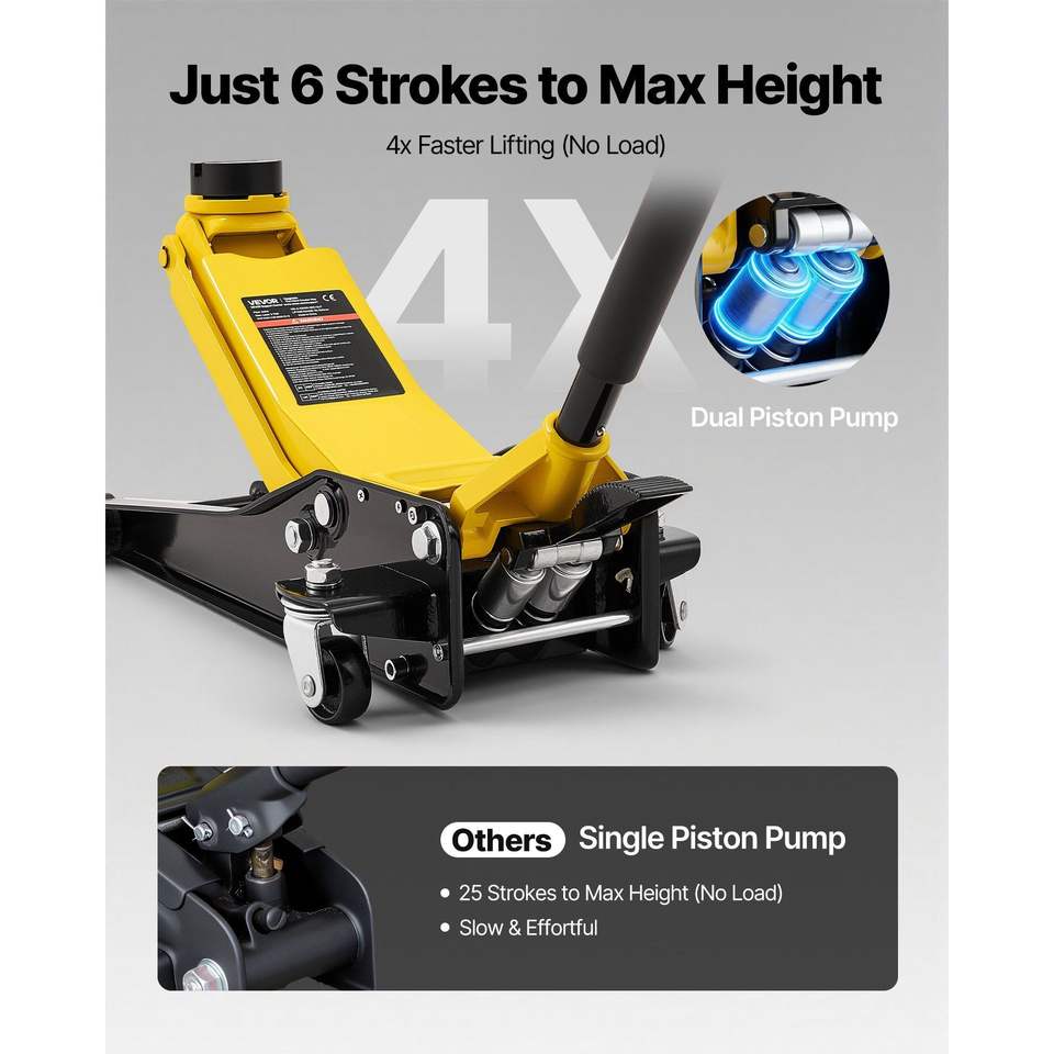 3 Ton (6614 Lbs) Capacity Steel Racing Floor Jack Low Profile Dual Pistons Quick Lift Pump with SUV Adapter Car Jacks