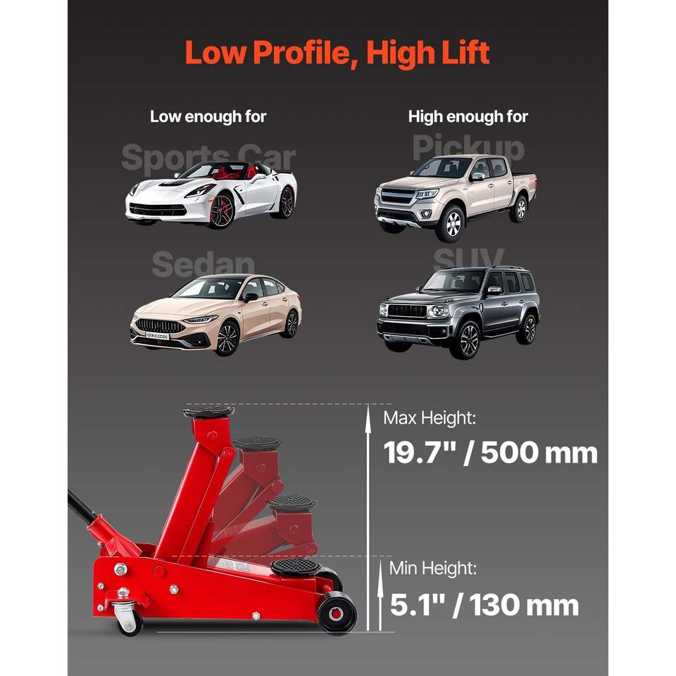 Martinetto idraulico da officina in acciaio a basso profilo da 3 tonnellate (6614 libbre) con pompa a sollevamento rapido a pistone singolo per auto