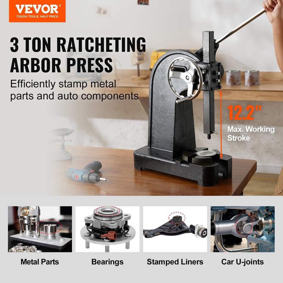 Pressa Manuale a Cricchetto in Ghisa da 3 Tonnellate con Altezza Massima di 31 cm, Strumento per Riparazioni Auto