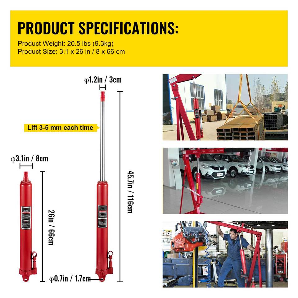 Martinetto Idraulico a Cilindro Lungo da 3 Tonnellate/6600 Libbre con Pompa a Pistone Singolo, Base a Forcella e Maniglia per Sollevamento Manuale, per Riparazioni Auto