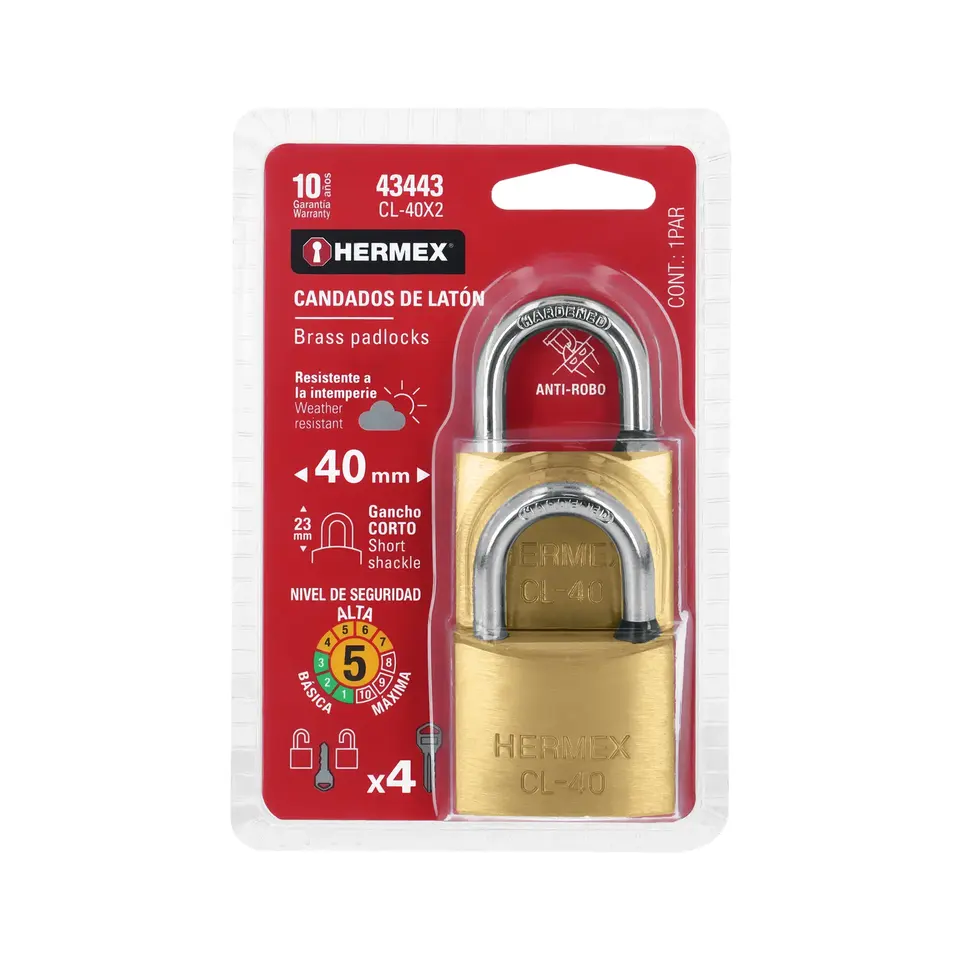 3-Unit Box with 40mm Brass Safety Padlocks Short Hook Waterproof and Anti-Theft Steel Blister Locks