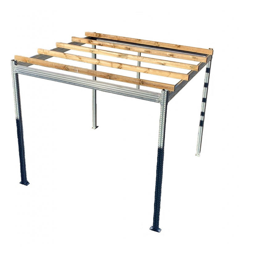 3 X 3 m Impregnated Pine Wood Carport Canopy Pergola with Bolted Base Easily Assembled Container Shelter