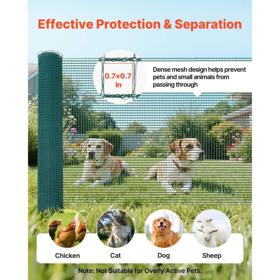 Recinzione Temporanea in Rete Plastica per Giardino 3 x 49,2 FT con Picchetti a Doppia Punta e Pali per Rete con Corde di Rinforzo
