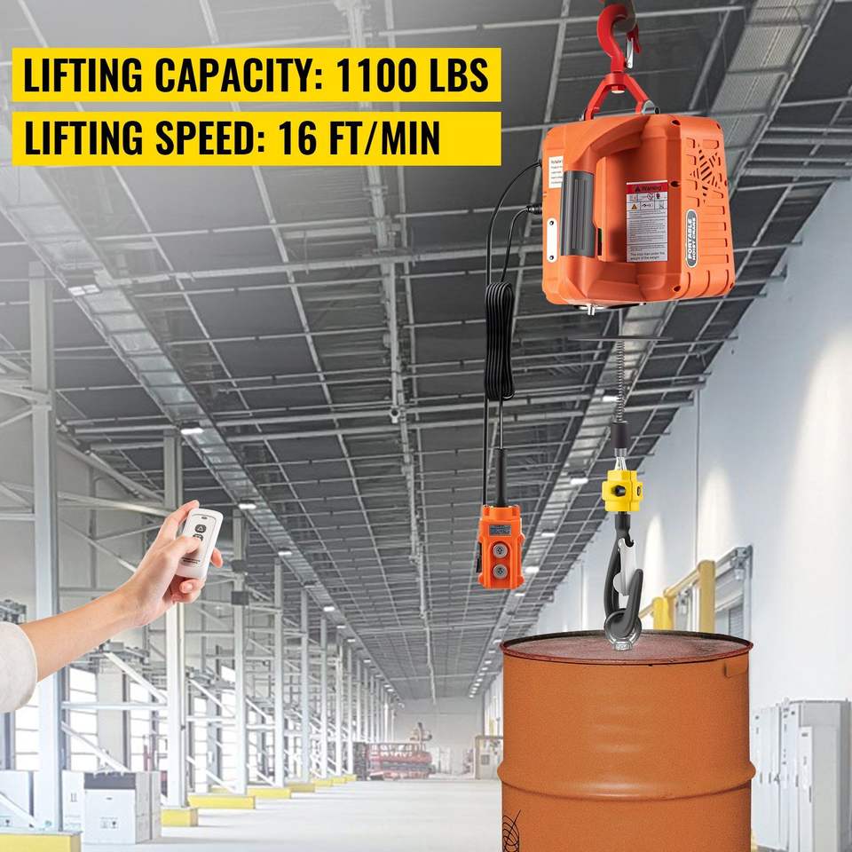 Verricello Elettrico Portatile 3-in-1 da 1100 libbre, Gru Elettrica 110V, Altezza di Sollevamento 25ft, Verricello Sollevatore Wireless, Verricello Elettrico 3-in-1