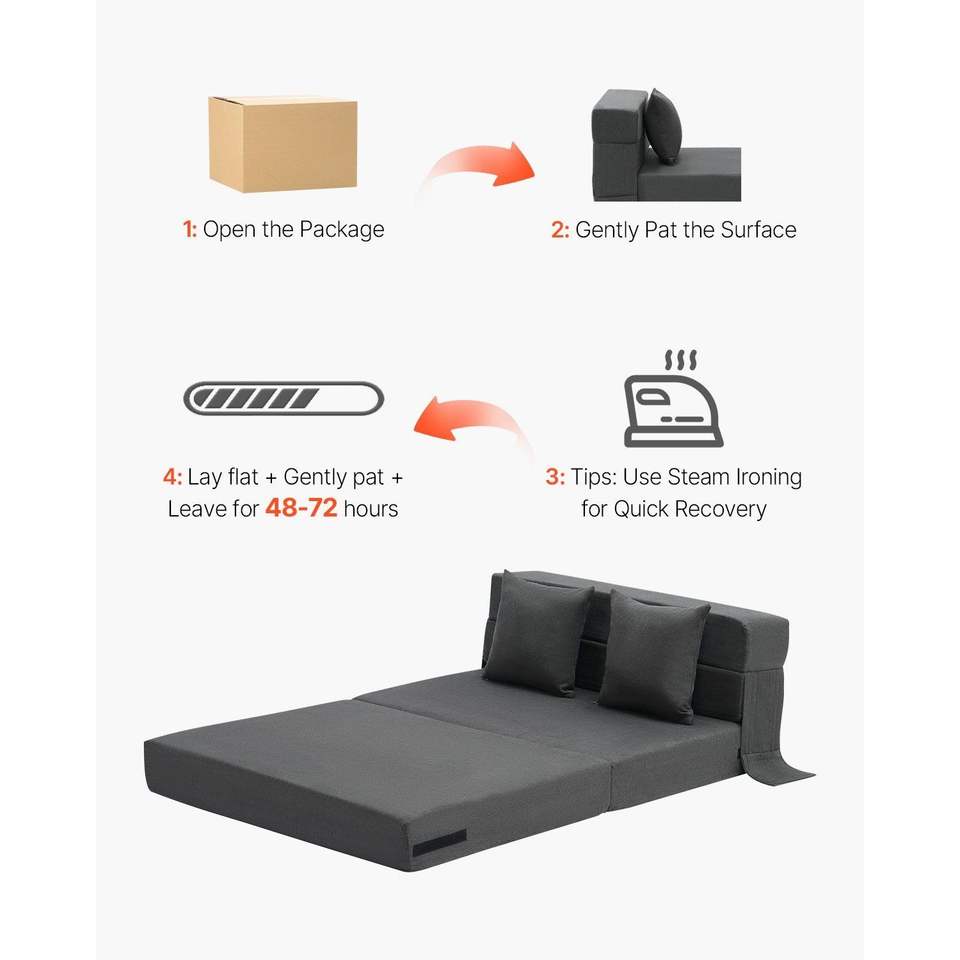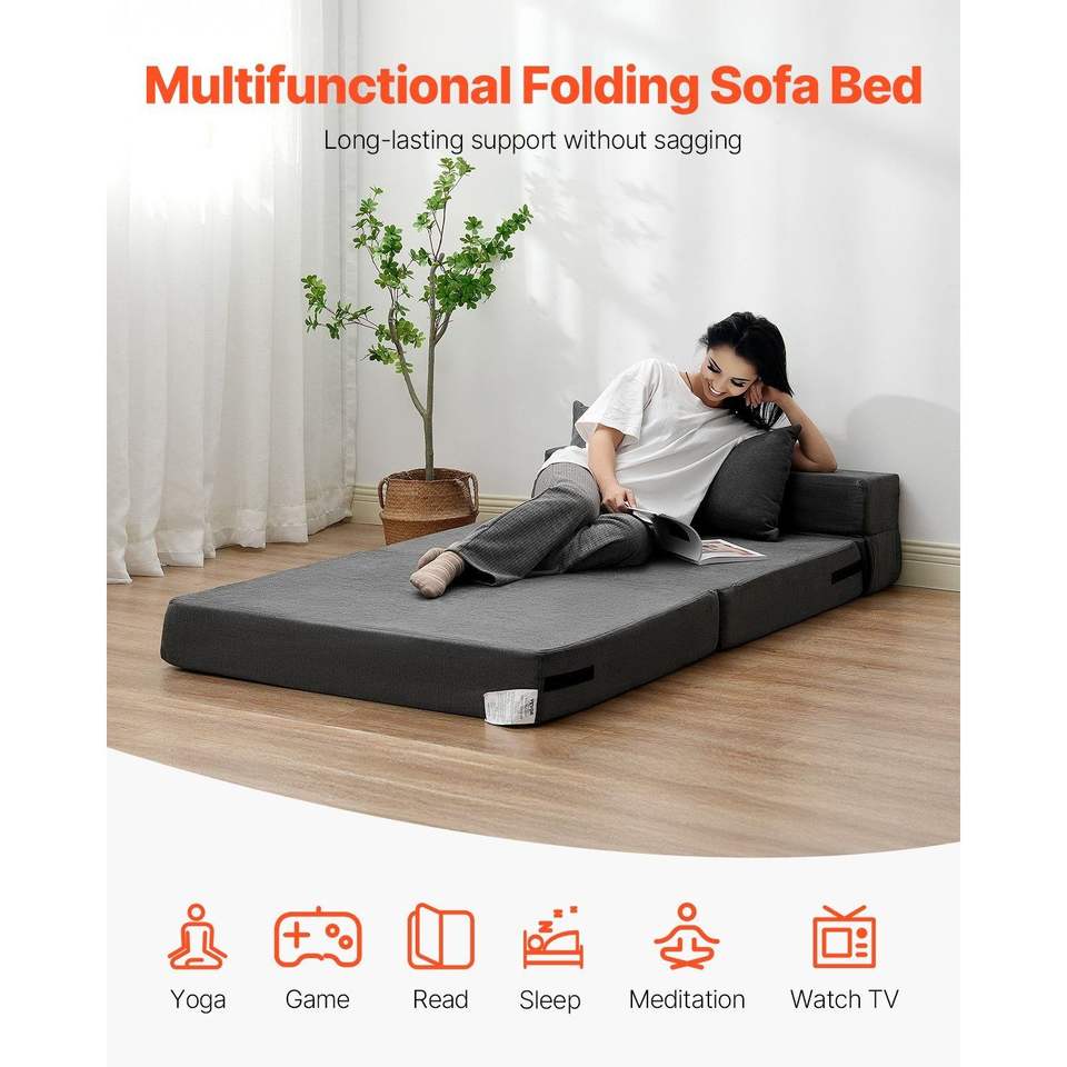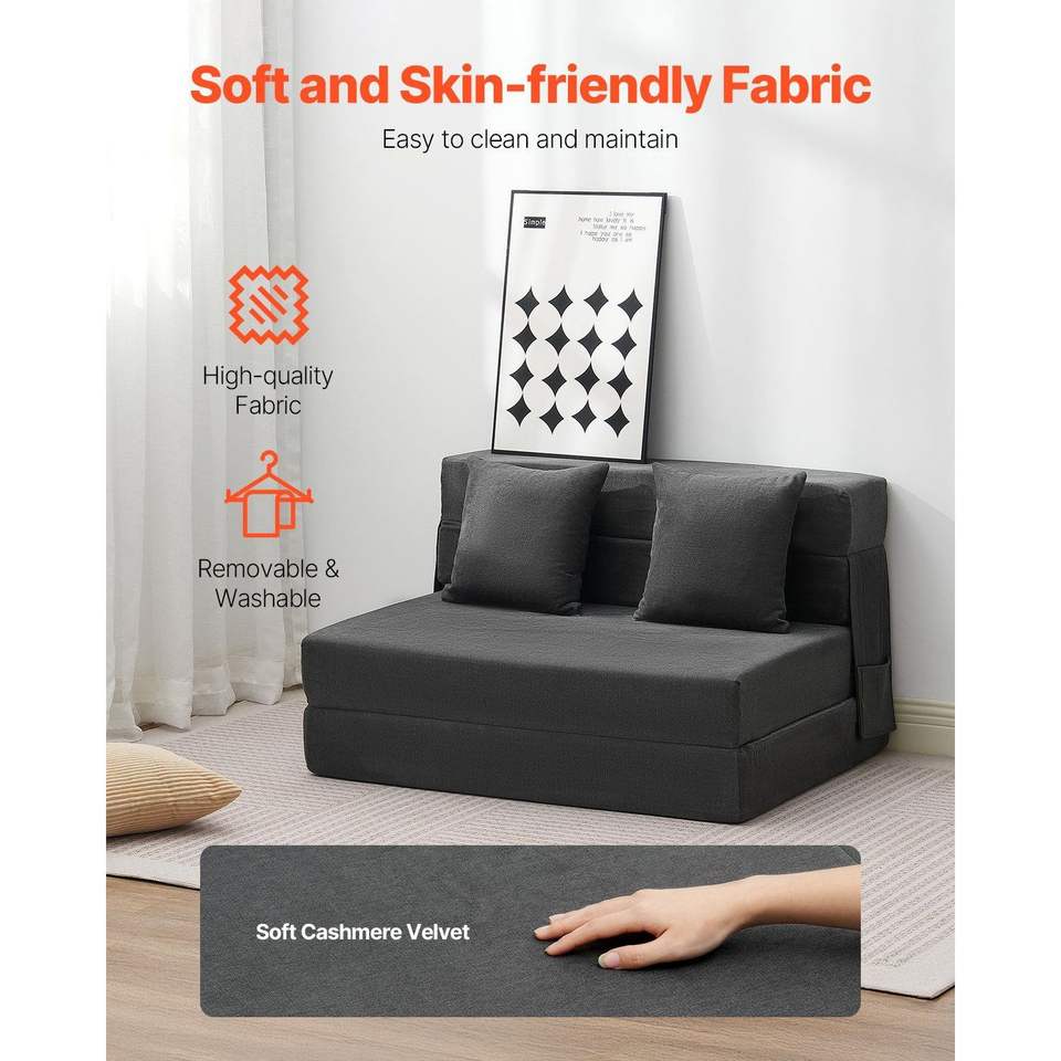 Divano Letto Pieghevole 3-in-1 Convertibile in Memory Foam ad Alta Densità 25D con 2 Rivestimenti Lavabili e 2 Cuscini