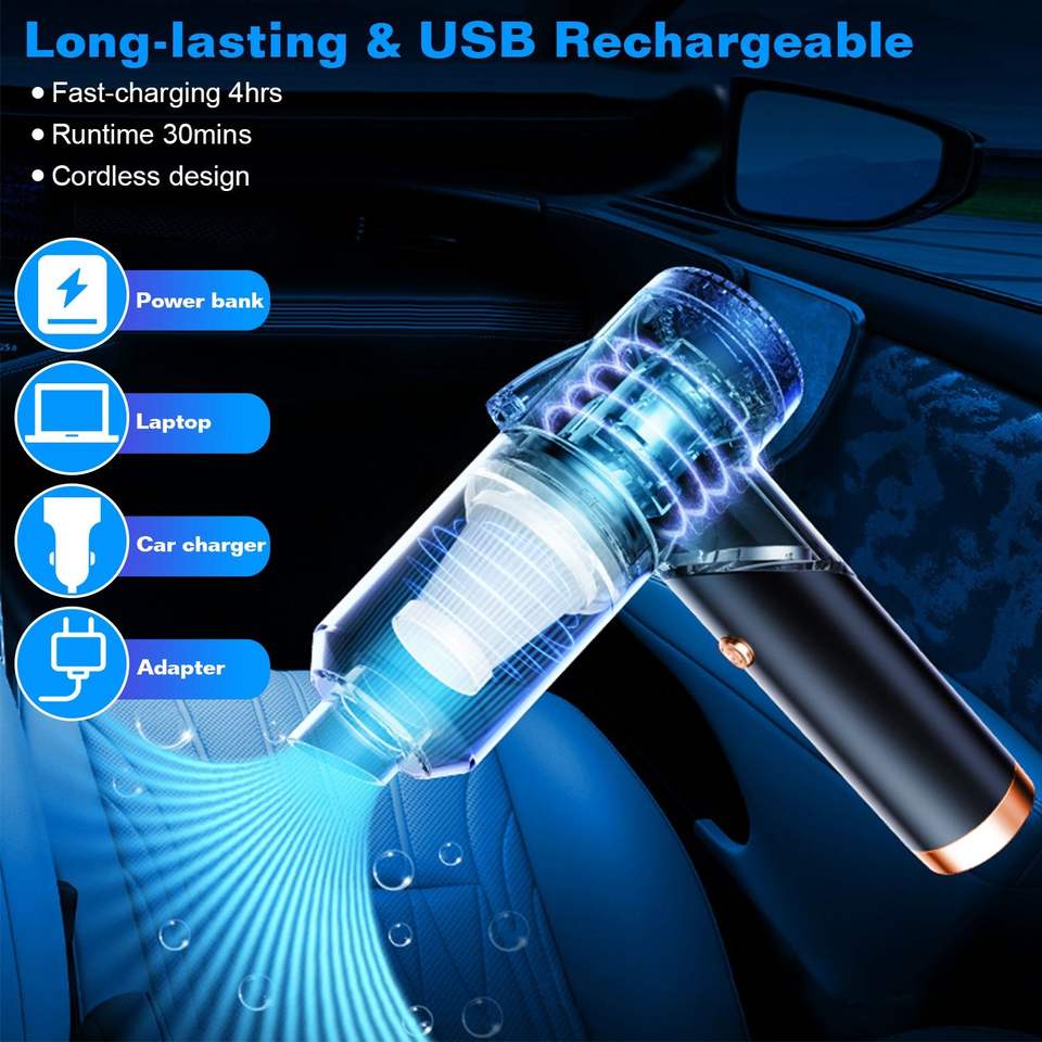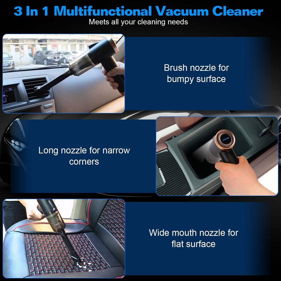 Aspirapolvere Portatile Senza Fili 3 in 1 con Luce LED, 120W 9000PA, Pieghevole e Ricaricabile per Auto e Casa