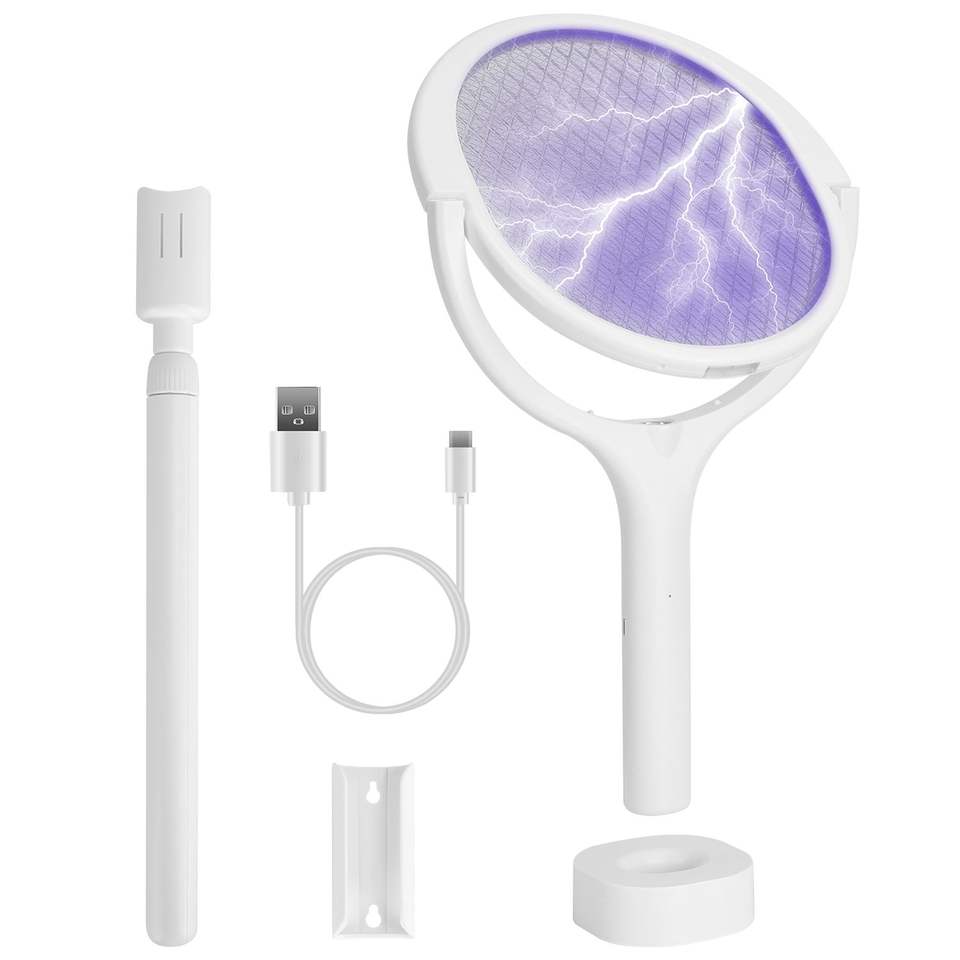 Racchetta Elettrica Anti-Insetti 3 in 1 con Asta Telescopica Rotante a 90 Gradi per Interni ed Esterni