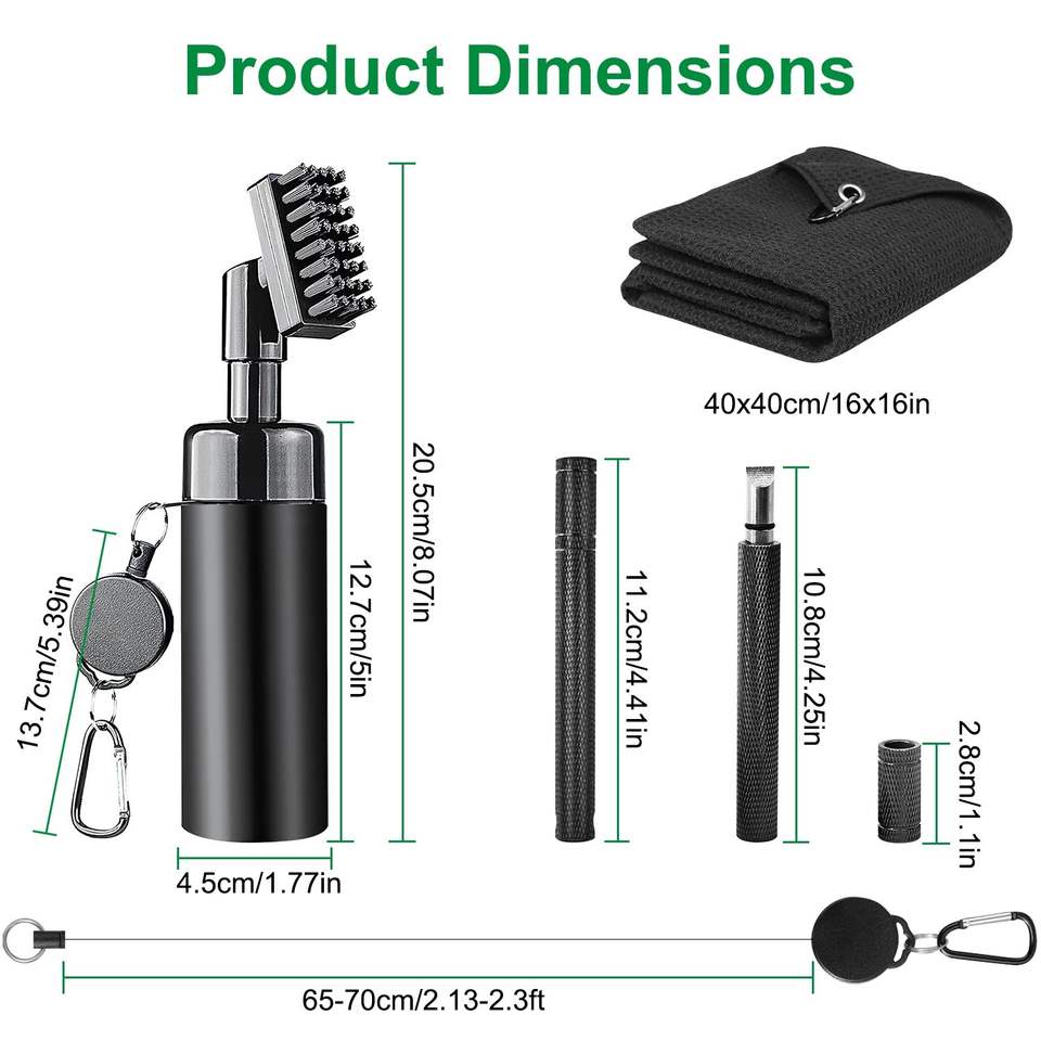 Kit di Pulizia per Mazze da Golf 3-in-1 con Clip Retrattile, Bottiglia d'Acqua da 5 Oz, Affilatore per Scanalature, Asciugamano da Golf - Regalo per Appassionati di Attrezzatura da Golf