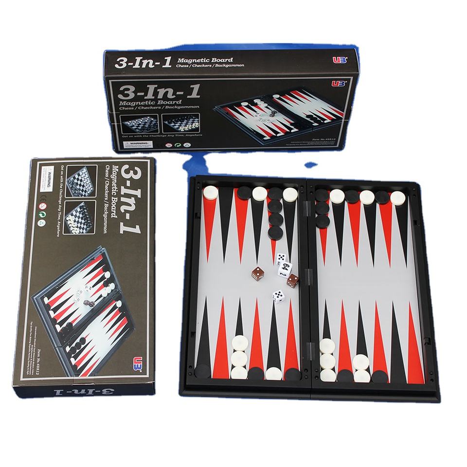 3 in 1 set di giochi di scacchi e checker e backgammon magnetica