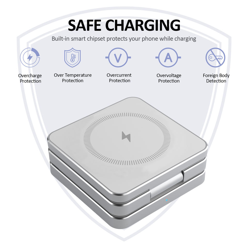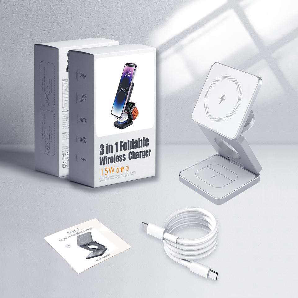 Elettrico, Caricatore senza fili, Adattatore universale, 3 in 1 Stazione di Ricarica Senza Fili, Magnetico, Caricabatteria Da tavolo, Fast chargerTipo